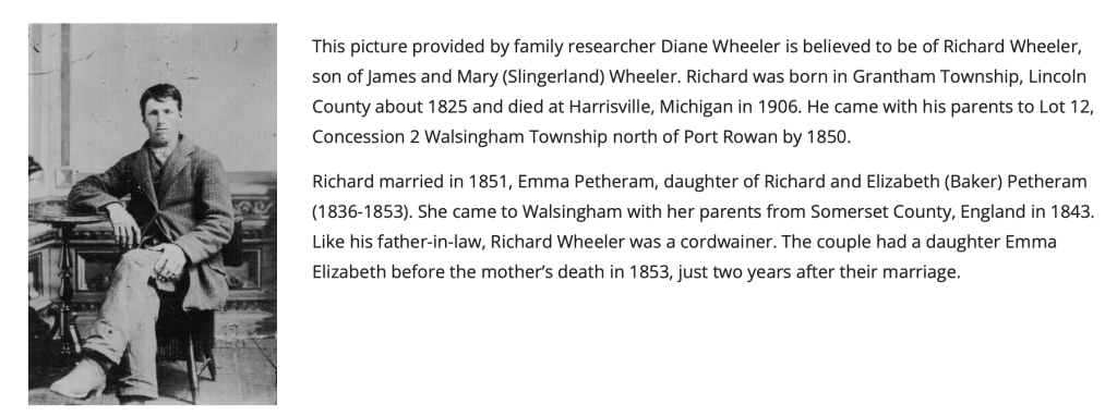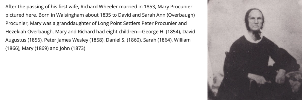 The following photo is our Great Great Grandfather Richard Wheeler (1824 – 1906) who was born in Canada and died in Michigan. See photo of his 2nd wife, Mary Procunier (photo below).
