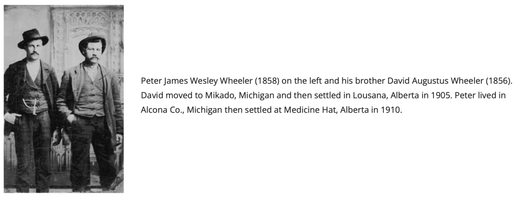 Below, our great grandfather Peter James Wheeler with his brother David Augustus Wheeler. The fact David Wheeler moved to Alberta in 1905 is a new fact of which I was not aware when writing the book.